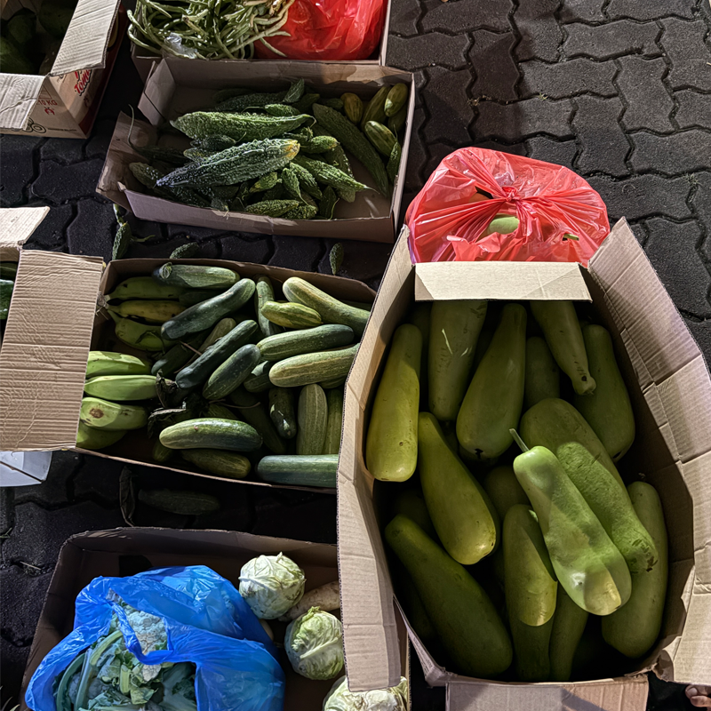 Over the two sessions, we carried, sorted, and helped pack the food gathered: onions, cabbages, oranges, almonds, beans, packets of wheat flour, and so many varieties of gourds. Sorting out these fruits and vegetables was a learning experience in itself, and we found ourselves asking questions to more seasoned volunteers about what we were actually sorting and how we could prepare them for food. During these food rescue sessions, most of the produce collected would be delivered by volunteer drivers to soup kitchens and other charities.