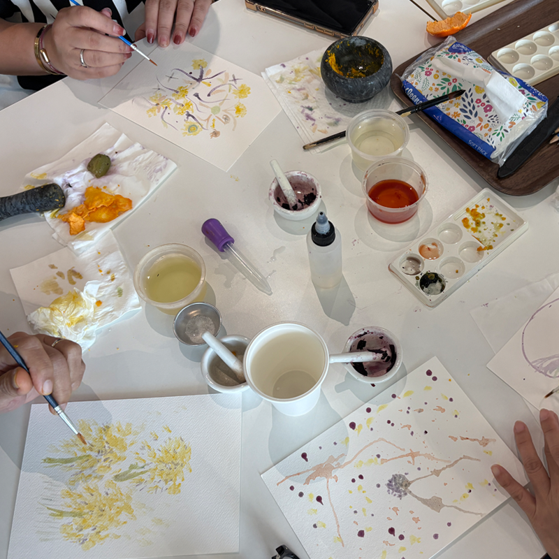 We were glad to see that participants were all really engaged with making these inks, and created lovely “thank you” cards for the food rescue volunteers.