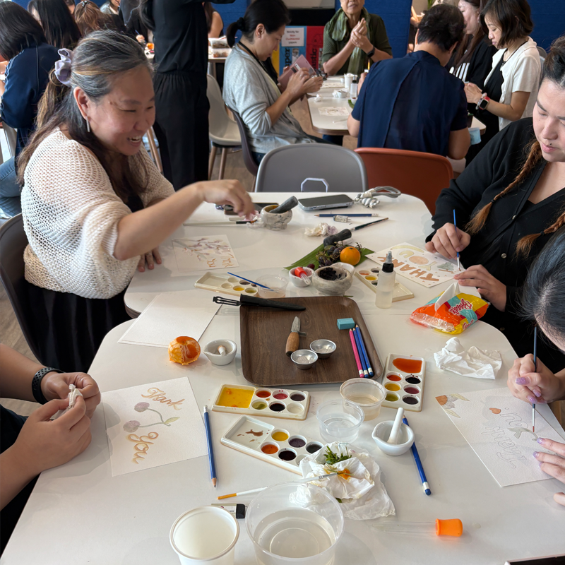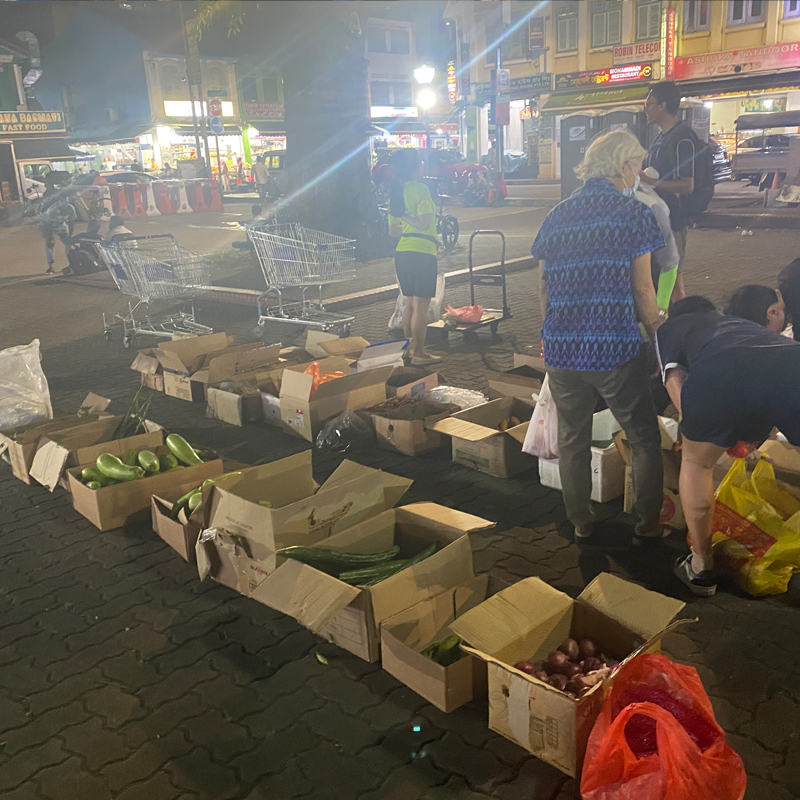 With the invitation of the sustainability team at Rajah & Tann, we conducted an ink making workshop based around the topic of food waste. Aligning with the company’s plan to do a corporate food rescue session at Little India, we went to join those rescue sessions ourselves to see what types of food were typically gathered from the storeowners there.